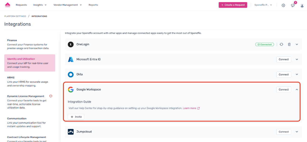 - Return to Spendflo's Integrations page and click Configure on Google Workspace in the connected apps section.
