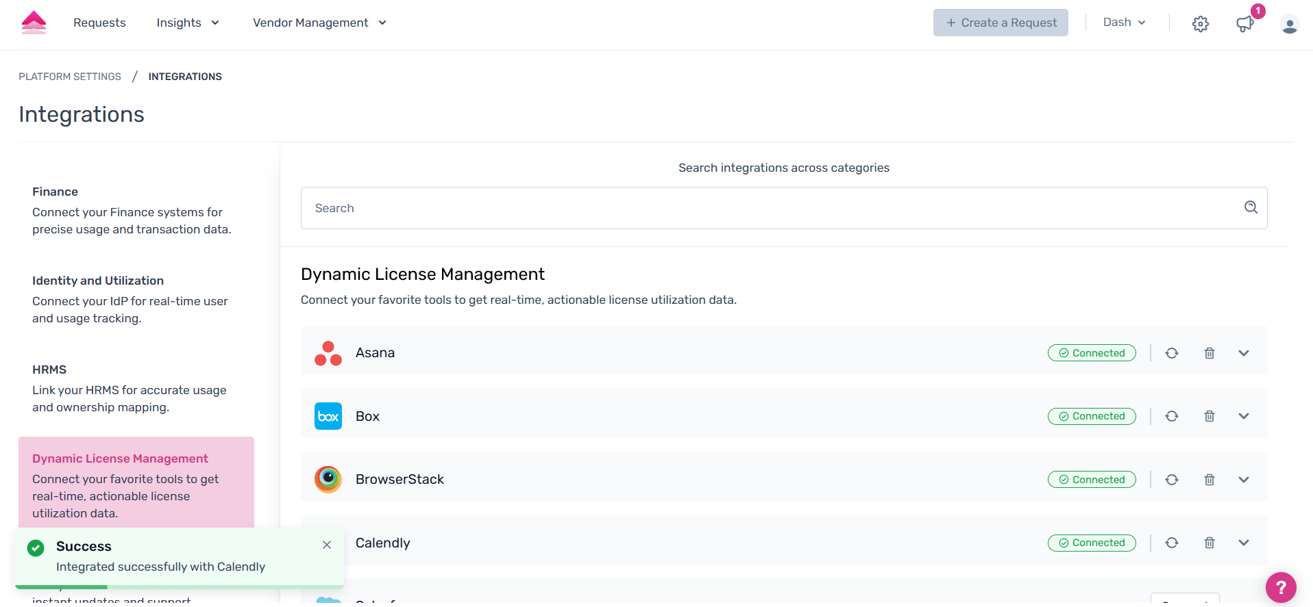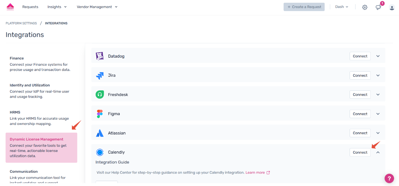 Spendflo's Calendly integration feature transforms the management of your scheduling licenses by consolidating all licensing information in one centralized platform. Spendflo seamlessly connects with Calendly, providing direct access to license details and usage data within the Spendflo platform. With this integration, you not only gain visibility into Calendly licensing but also the ability to perform specific license-related actions from within the Spendflo app.