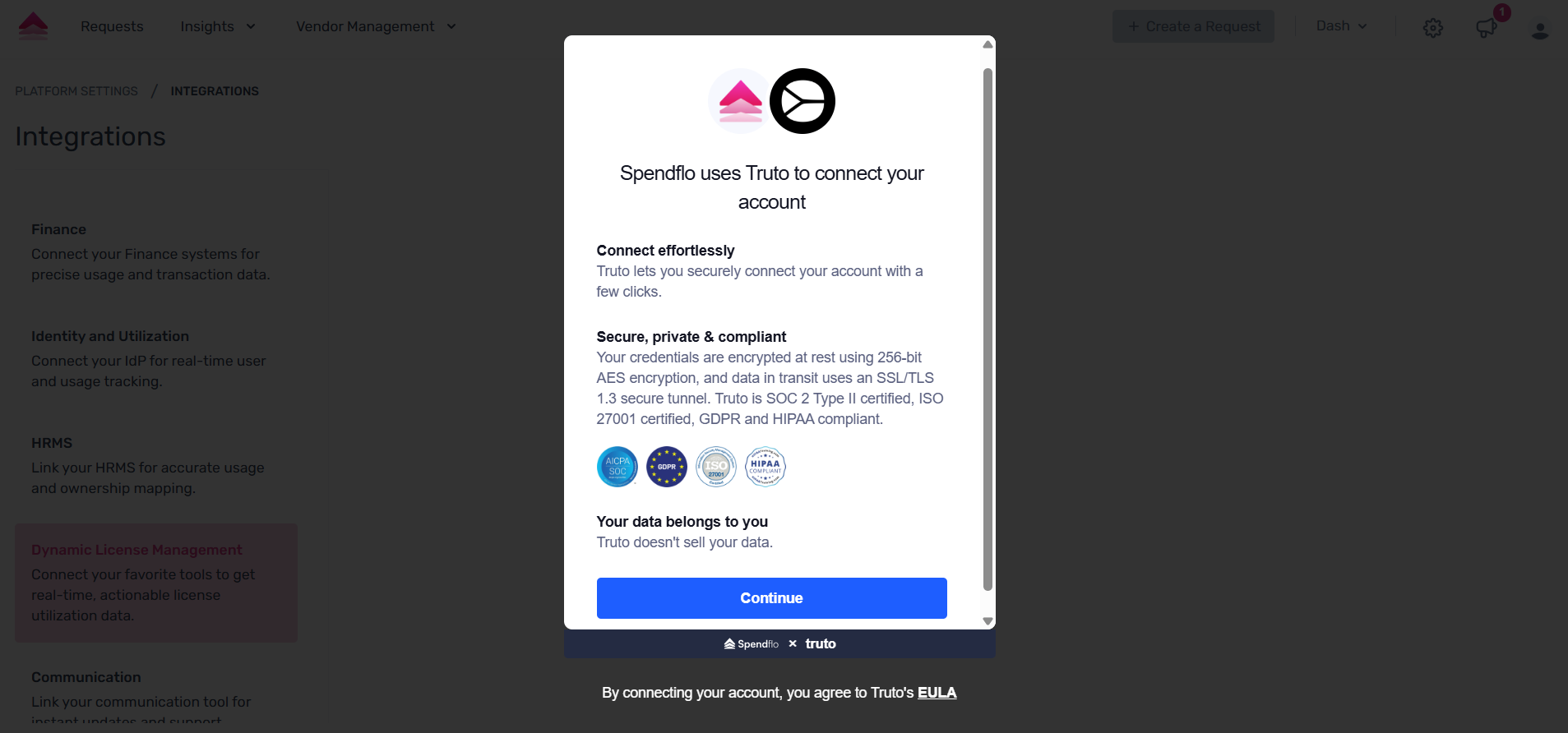 Step 3. Spendflo uses Truto to connect your Freshservice account securely. Click on Continue → Connect to proceed with the connection.