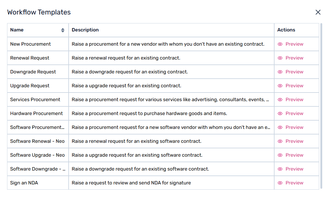By default, the following types of legacy templates are available within the Spendflo platform: