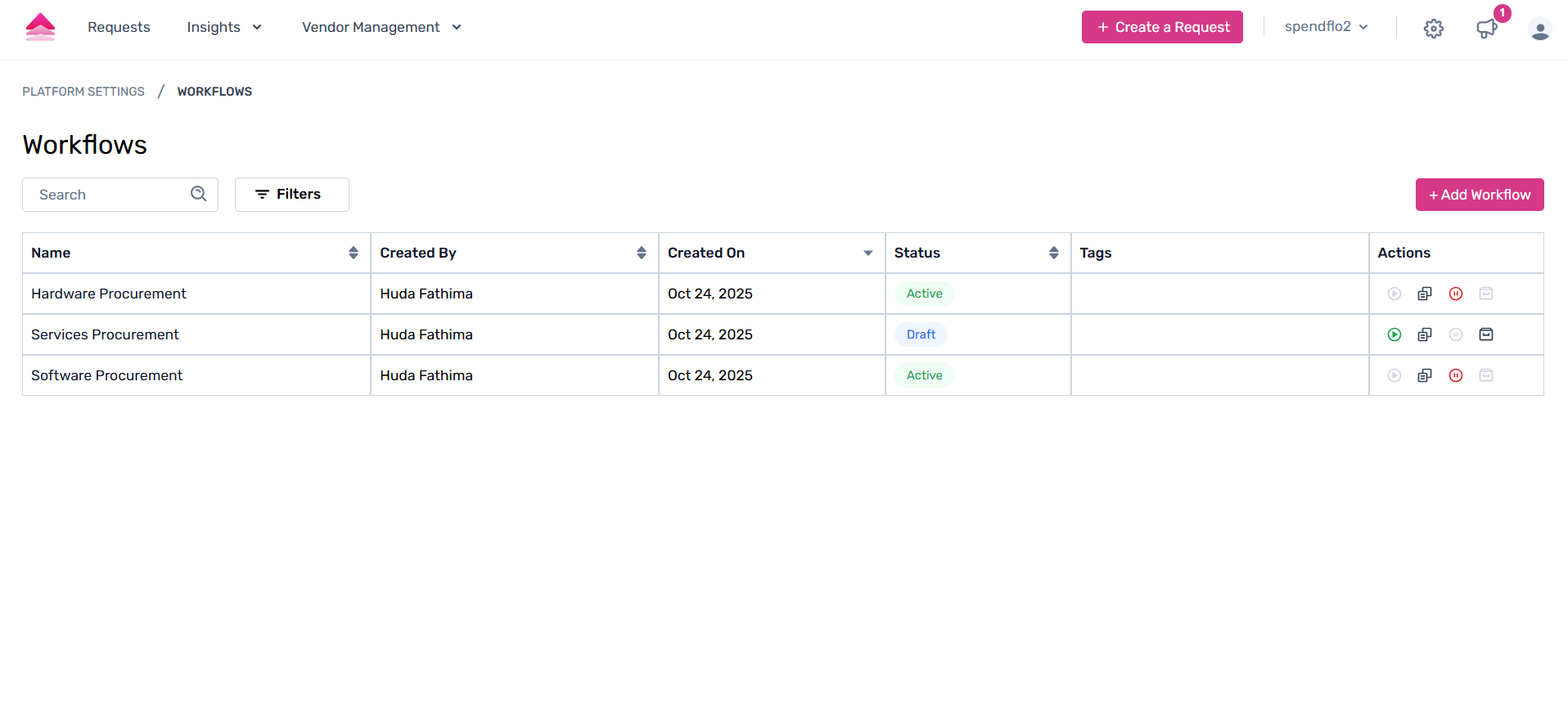 Step 1. Click on an active or a draft workflow.