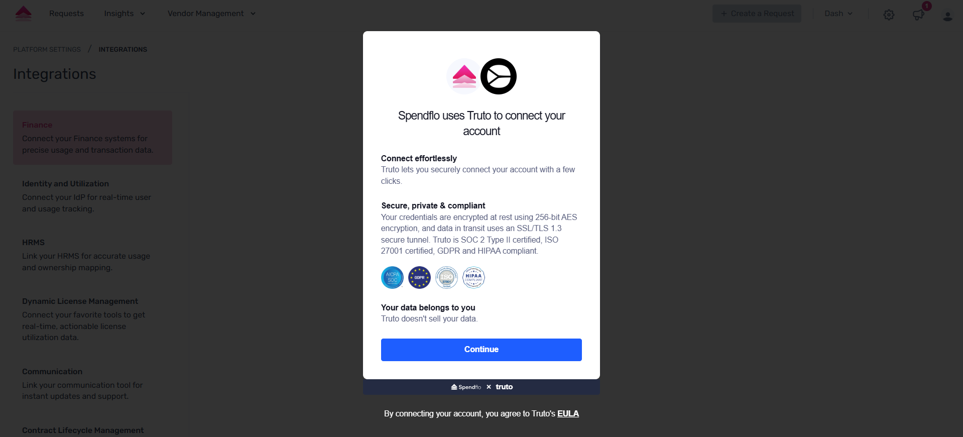 Step 3. Spendflo now uses Truto to connect your Netsuite account securely. Click on “Continue”.