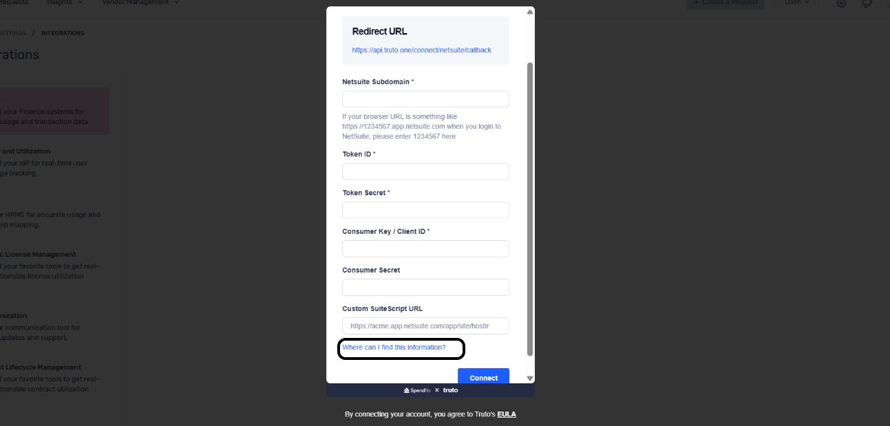 })Step 2. Once the script is deployed we need to paste the script url in Connect UI screen of Truto while integrating Netsuite in Spendflo: