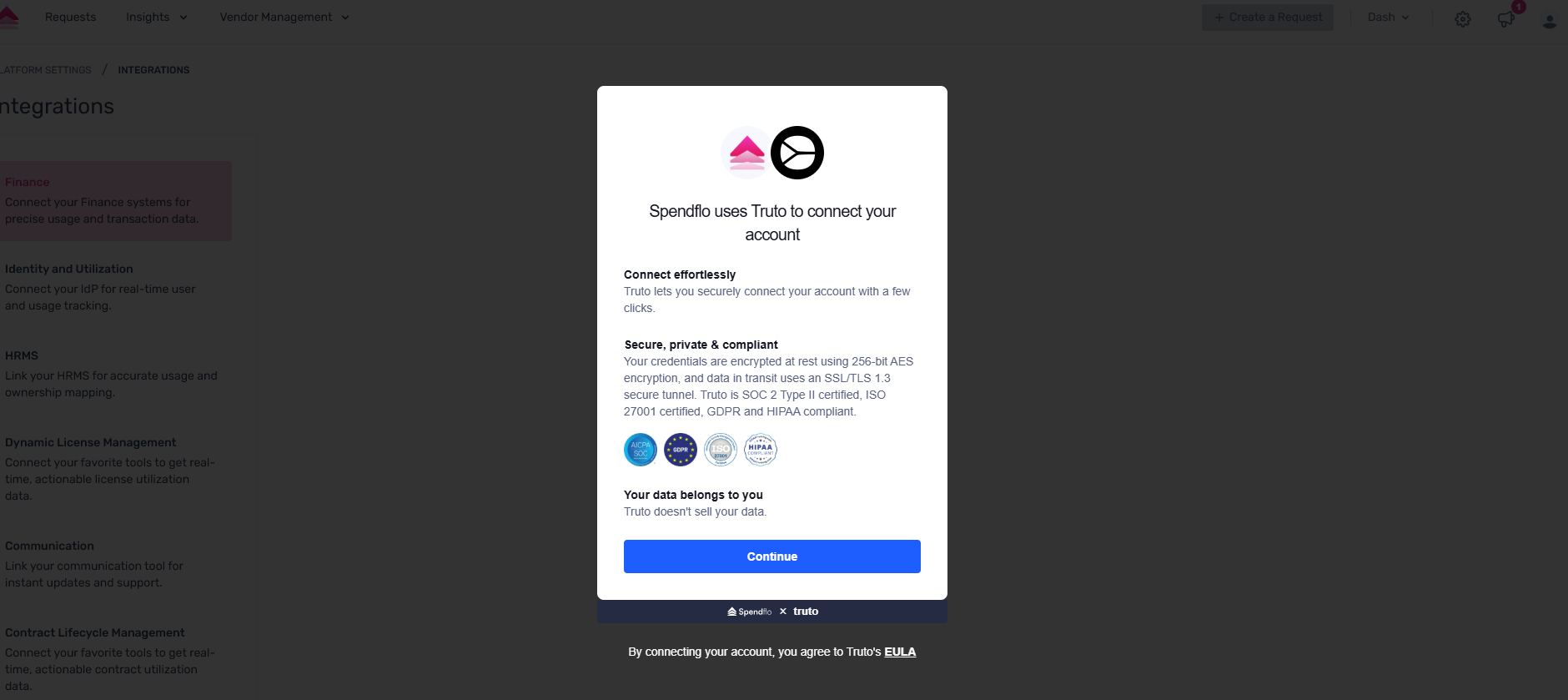 Step 3. Spendflo now uses Truto to connect your Coupa account securely. Click on “Continue”. Ensure to be logged into your Coupa account.