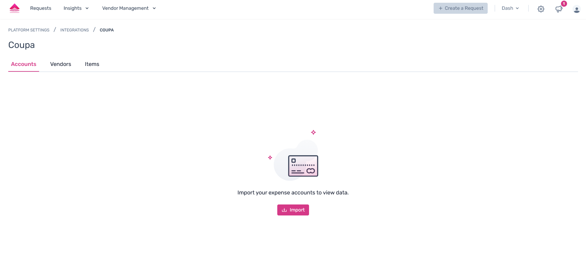 Step 2. On the redirected link, users can get the account data from your Coupa application, click on the “Import ” CTA under the Accounts tab.