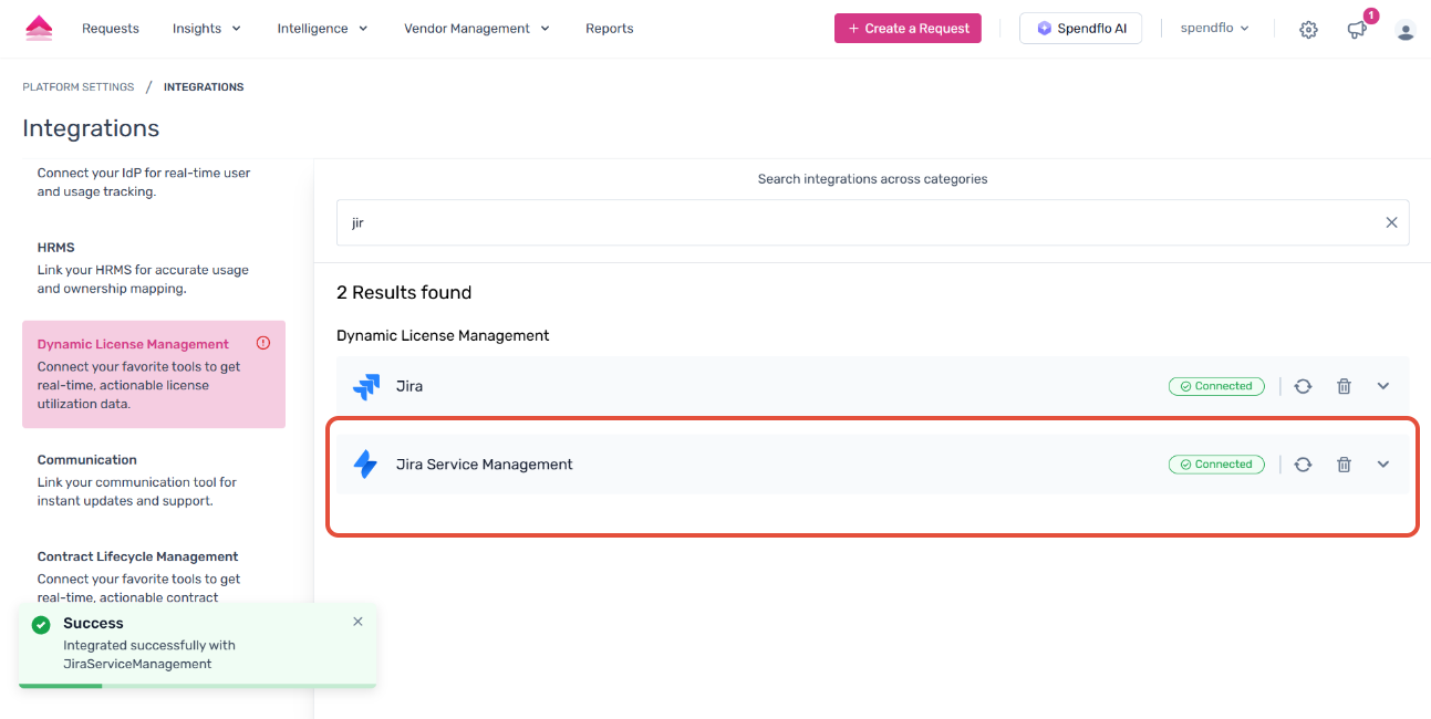 - Go to Settings & navigate to Platform Settings → Integrations → Dynamic License Management → Jira Service Management